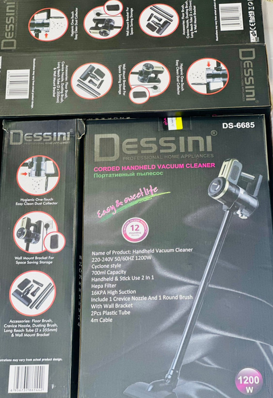 نام محصول : جارو برقی دستی,220-240 ولت 50/60 هرتز,توان : 1200 وات,ظرفیت : 600 میلی لیتر,استفاده دستی و عصایی " 2 در 1,فیلتر هپا,مکش بالا 16 کیلو پاسکال,شامل 1 نازل مخصوص درز و 1 برس گرد با پایه دیواری,2 عدد لوله پلاستیکی,کابل 4 متری